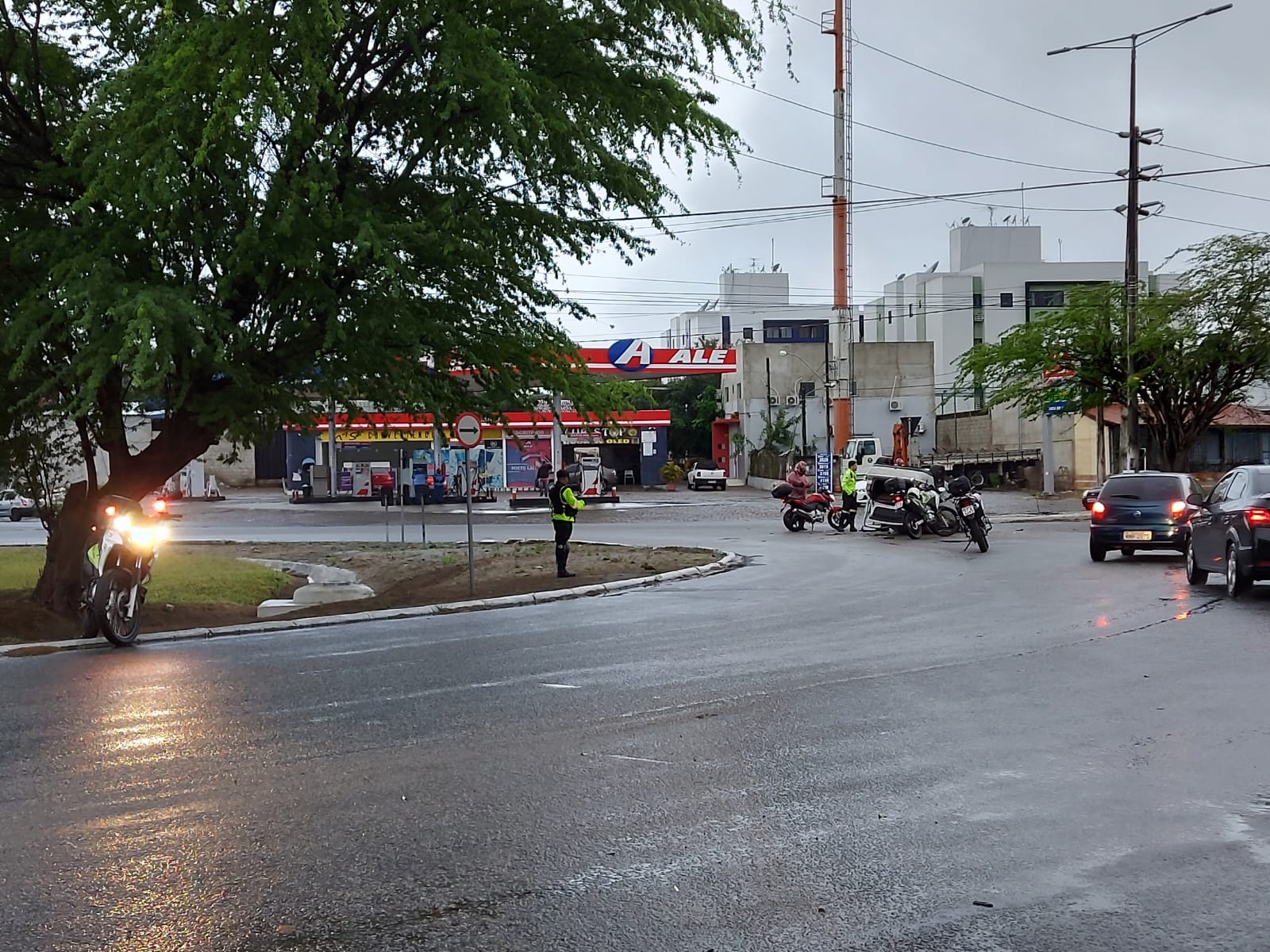 A quarta-feira amanheceu chuvosa em Campina Grande e a pista molhada pode ter sido a causa de um acidente que foi registrada em uma rotatória da Avenida Floriano Peixoto que dá acesso ao bairro Dinamerica. Um motorista capotou o veículo que dirigia durante a madrugada, por volta de 2h30.