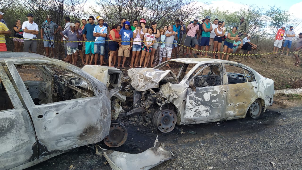 Quatro pessoas morreram carbonizadas após um acidente que envolveu dois veículos na PB-238, que liga os municípios de Teixeira e Desterro, Sertão paraibano. A colisão frontal aconteceu na tarde desta terça-feira (10), por volta de 13h, e de acordo com o Corpo de Bombeiros ainda não foi possível identificar as causas do acidente.