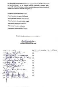 Um grupo de 13 vereadores (maioria na Casa de Félix Araújo) assinou uma lista em apoio ao vereador Marinaldo Cardoso (Republicanos) para presidir a Câmara Municipal de Campina Grande no biênio 2021/2022.