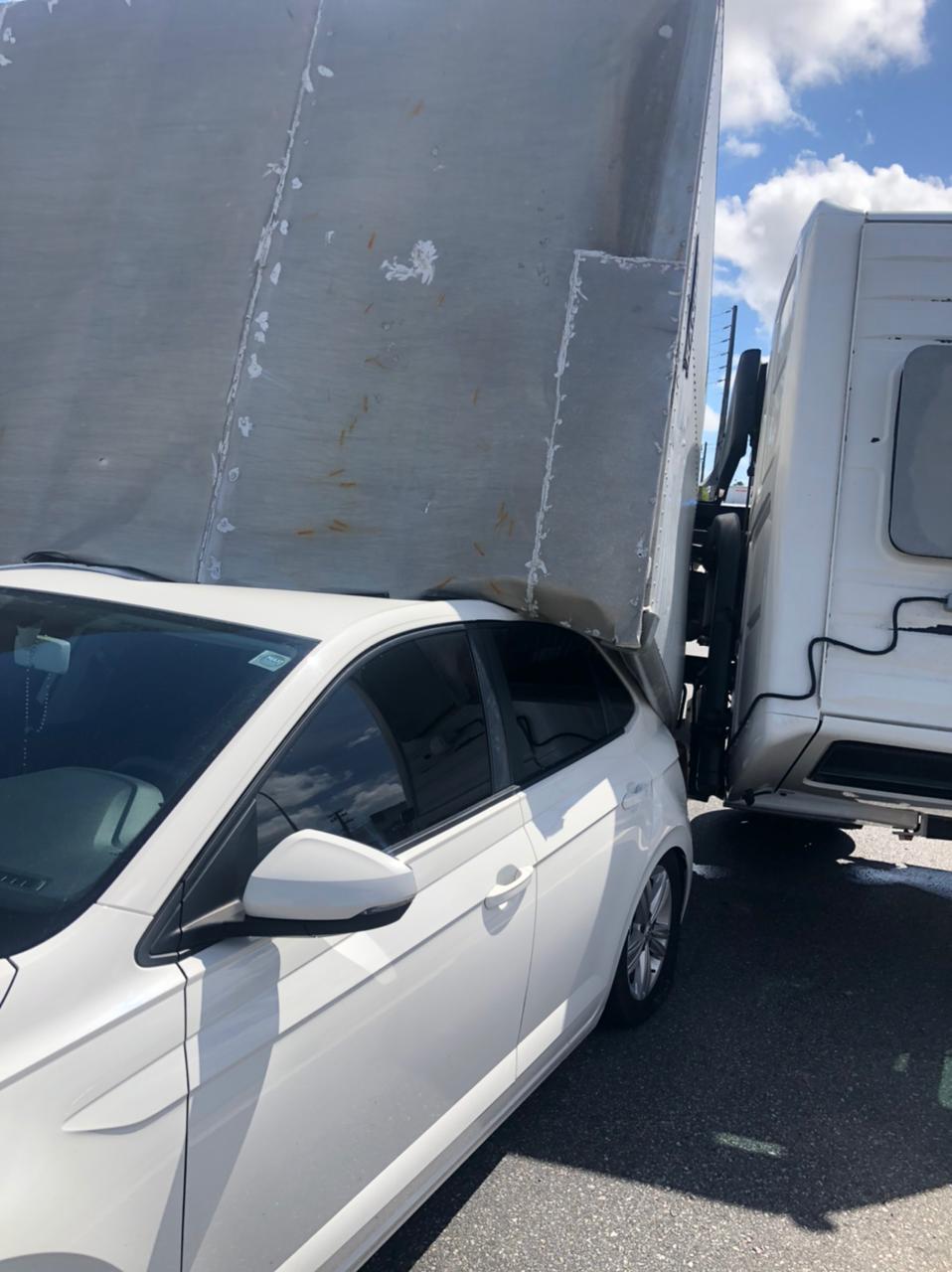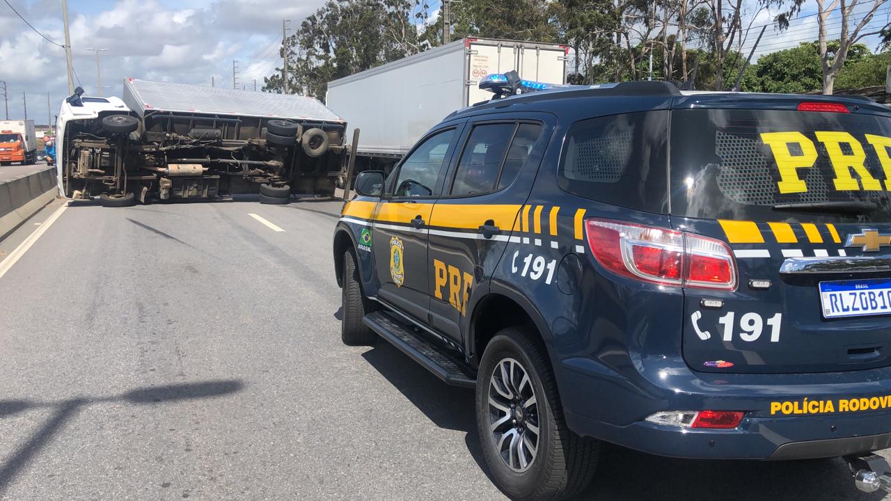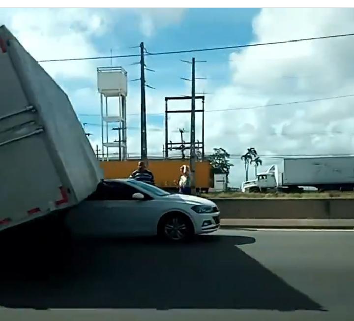 Um caminhão tombou por cima de um veículo de passeio, VW Polo, na manhã desta terça-feira (26). O acidente aconteceu no quilômetro vinte e seis da BR-230, no sentido João Pessoa/Bayeux. Ninguém ficou ferido. No entanto, por conta do acidente a rodovia precisou ser parcialmente interditada pela Polícia Rodoviária Federal (PRF).