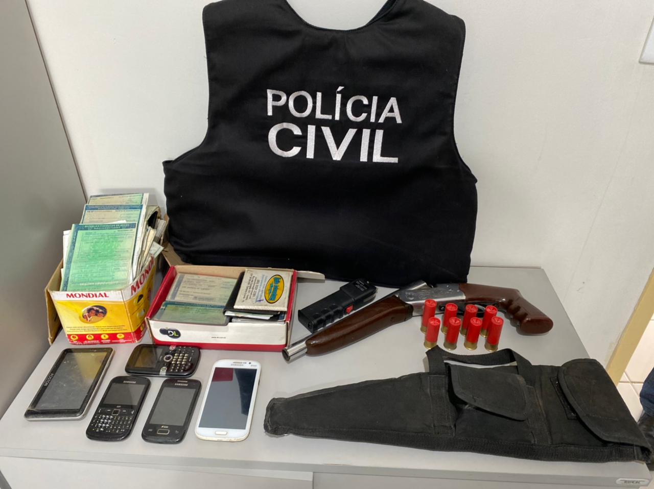 Durante uma apuração de uma tentativa de homicídio nesta quarta-feira (3) em Campina Grande, policiais civis apreenderam uma espingarda calibre 12, oito munições de mesmo calibre, vários documentos de veículos, um aparelho de ‘choque’, quatro telefones celulares e um GPS. O material estava em uma oficina mecânica que fica no bairro do Velame.