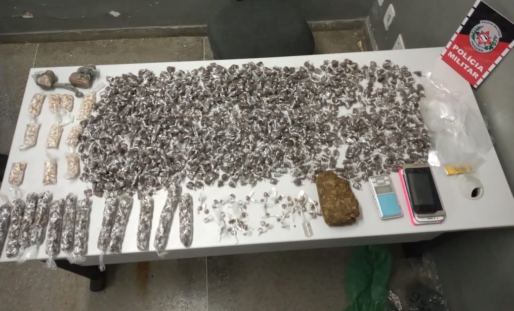 Três indivíduos foram presos e um adolescente foi apreendido no final da tarde desta quinta-feira (11) em Campina Grande. Com eles, os águias da Polícia Militar encontraram quase dois mil papelotes de maconha, 500 pedras de crack, balanças de precisão e outros elementos que caracterizam o tráfico de drogas. O material estava sendo fracionado em um quitinete que fica na “Rua dos Peixeiros”, no bairro do Pedregal.