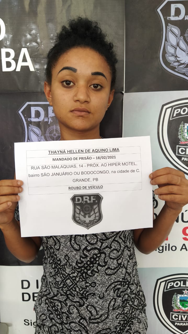 Uma mulher de 19 anos foi presa nesta quinta-feira (18) suspeita de integrar um grupo criminoso que roubava veículos em Campina Grande. A prisão foi feita pela Delegacia de Roubos e Furtos (DRF) de Campina Grande no bairro de São Januário. Detalhe: essa é a sexta vez que ela é presa, a segunda somente esta semana. Na quarta-feira ela foi detida suspeita de participação no roubo de uma moto e também tráfico de drogas.