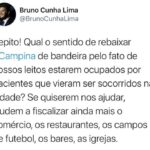 “Qual o sentido de rebaixar #Campina de bandeira pelo fato de nossos leitos estarem ocupados por pacientes que vieram ser socorridos na cidade? Se quiserem nos ajudar, ajudem a fiscalizar ainda mais o comércio, os restaurantes, os campos de futebol, os bares, as igrejas.”, afirmou.