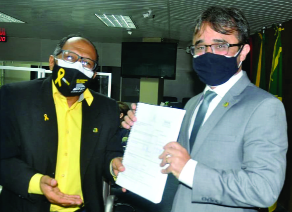 O vereador Marinaldo Cardoso, presidente da Câmara Municipal de Campina Grande, fez a entrega nesta terça-feira (4), do projeto de autoria do Poder Executivo que institui a Lei de Diretrizes Orçamentárias 2022 ao presidente da Comissão de Finanças, Orçamento, Fiscalização Financeira e Controle do legislativo, Waldeny Santana (Democratas).