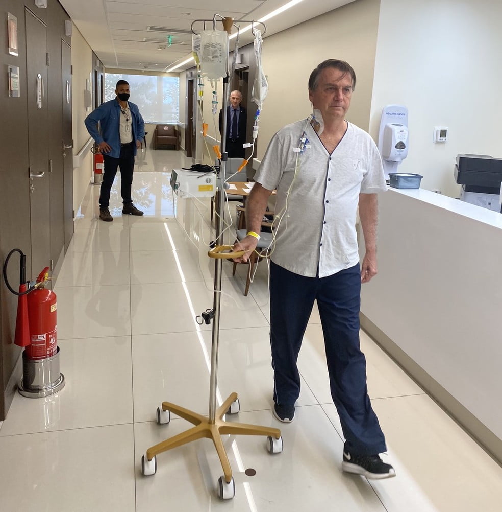 Durante a manhã desta sexta (16), a conta do presidente nas redes sociais postou uma foto do presidente andando pelos corredores do hospital com a frase: “em breve, de volta a campo, se Deus quiser!”.