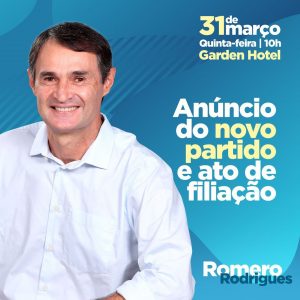 O ex-prefeito de Campina Grande, Romero Rodrigues, vai se filiar a um novo partido nesta quinta-feira (31). O anúncio aconteceu um dia depois dele deixar o PSD após o presidente nacional da legenda, Gilberto Kassab, anunciar a senadora Daniella Ribeiro como nova integrante da legenda e ainda dar de presente a ela a presidência do partido na Paraíba.