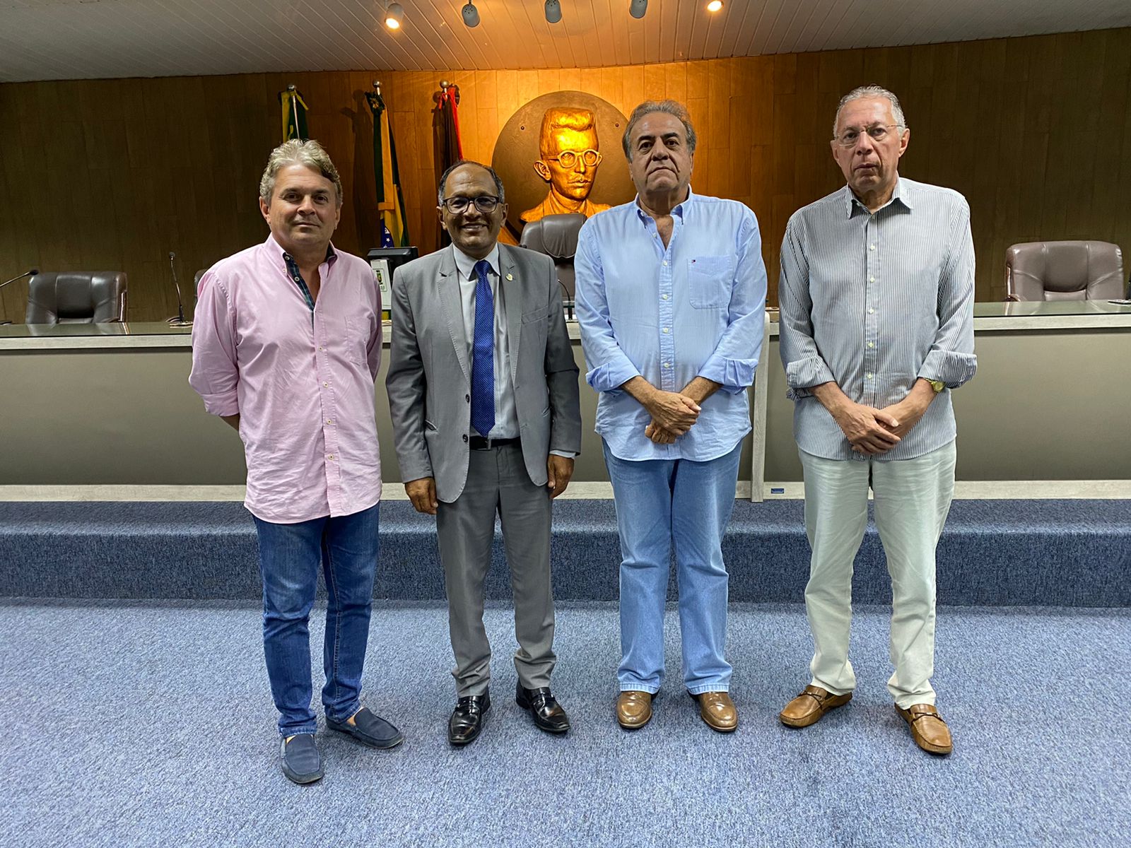 O presidente da Câmara Municipal de Campina Grande, vereador Marinaldo Cardoso, recebeu nesta quarta-feira (4), a visita de cortesia dos empresários Magno César Rossi, Manoel Gonçalves e Helder Campos, que estiveram no gabinete da presidência e no plenário da Casa.