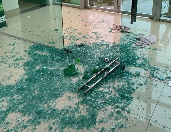 Segundo a Polícia Militar, para entrar na agência, os suspeitos quebraram as portas de vidro do local usando uma marreta.