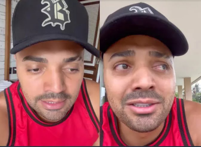 Em meio a lágrimas, o humorista agradeceu o apoio dos fãs, disse que lamenta o ocorrido e que vai se afastar das redes por um tempo.