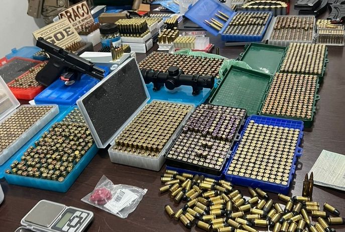 Ao todo, foram apreendidos: um fuzil calibre 556, duas pistolas Glock calibres 9mm, duas pistolas Taurus calibre 9mm, uma pistola Taurus calibre 40 e um revólver calibre 357. Além das armas, os policiais apreenderam também centenas de munições e duas máquinas de recarga de munições.