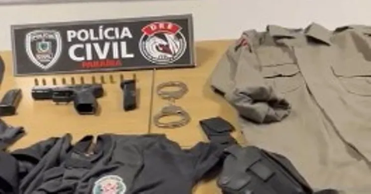 Na posse do autuado foi encontrado vasto material comprobatório de seus atos ilícitos: fardamento completo da polícia militar do Estado da Paraíba, coldres, algema, simulacro de arma de fogo, munição, entre outros’, disse.