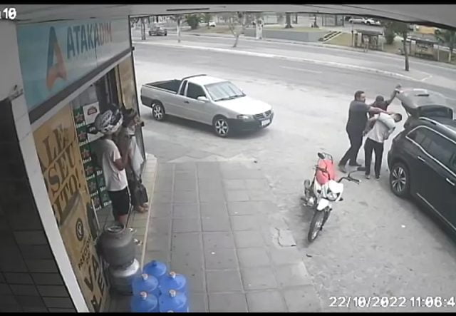 Os registros mostram desde a chegada do cliente, que entrou na loja para comprar bebidas, momentos depois é possível visualizar o funcionário deixando os produtos na mala do carro do agressor, que, em seguida, já o agrediu com socos e tapas no rosto.