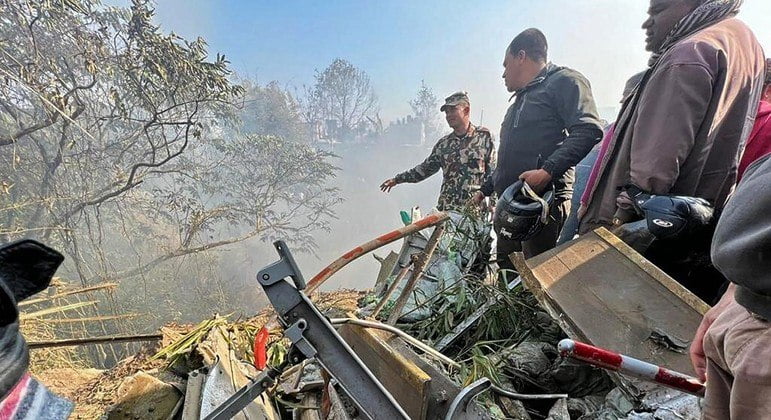 O avião caiu entre os aeroportos doméstico e internacional de Pokhara, no centro do país, pouco antes das 11h, hora local (2h, no horário de Brasília).