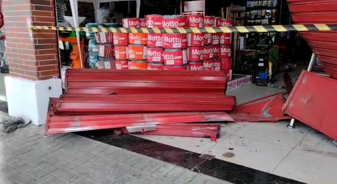 O alvo foi uma loja de equipamentos agrícolas e ferragens. Os bandidos usaram um carro de passeio para destruir a porta e ter acesso ao local. O prejuízo ainda não foi calculado.