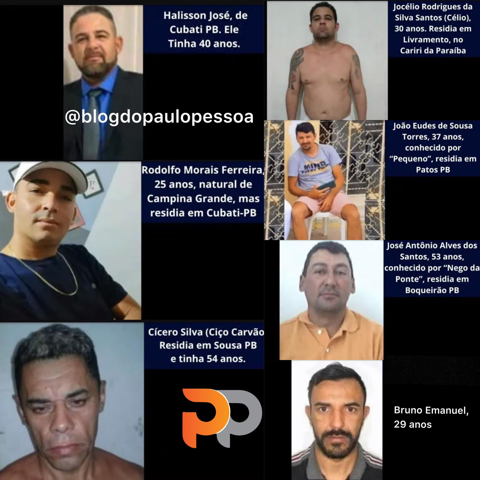 JOSÉ ANTONIO ALVES DOS SANTOS (“Nego da Ponte”), 53 anos. Investigações da Polícia Civil também apontam sua relação com grupos criminosos. Moradores de Boqueirão/PB, onde ele residia, o classificam como criminoso de conduta violenta.