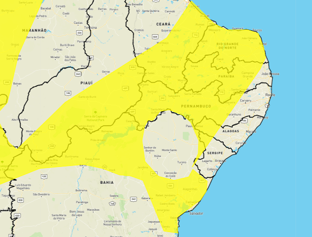 Além da Paraíba, as chuvas também estão previstas para boa parte do país chegando a ficar mais forte em estados como Ceará, Amazonas, Mato Grosso e São Paulo, que receberam alerta vermelho do Inmet.