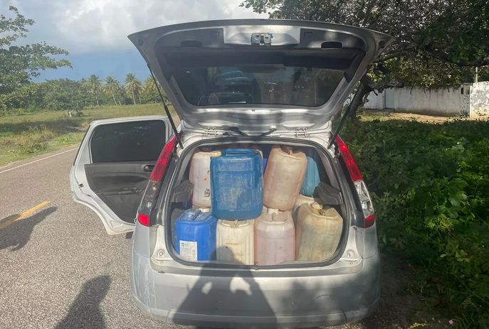 Um carro que transportava ilegalmente cerca de 640 litros de combustível sem nota fiscal foi apreendido sexta-feira (5) em Lucena, na Paraíba, após ação do Batalhão Especializado em Policiamento Turístico (BEPTur) da Polícia Militar.
