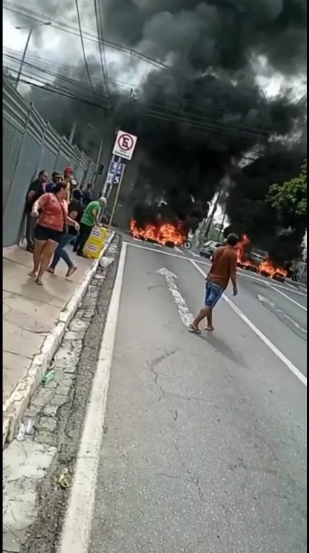 PROTESTO: Vendedores ambulantes colocam fogo em pneus próximo ao Parque do Povo, em CG