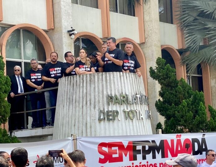 Prefeitos de diversas regiões da Paraíba encabeçaram um protesto, na manhã desta quarta-feira (30), na Praça dos Três Poderes, em João Pessoa, contra a redução nos repasses do Fundo de Participação dos Municípios (FPM) por parte do Governo Federal. Os gestores afirmam que as receitas têm diminuindo, prejudicando a realização de serviços nas cidades.