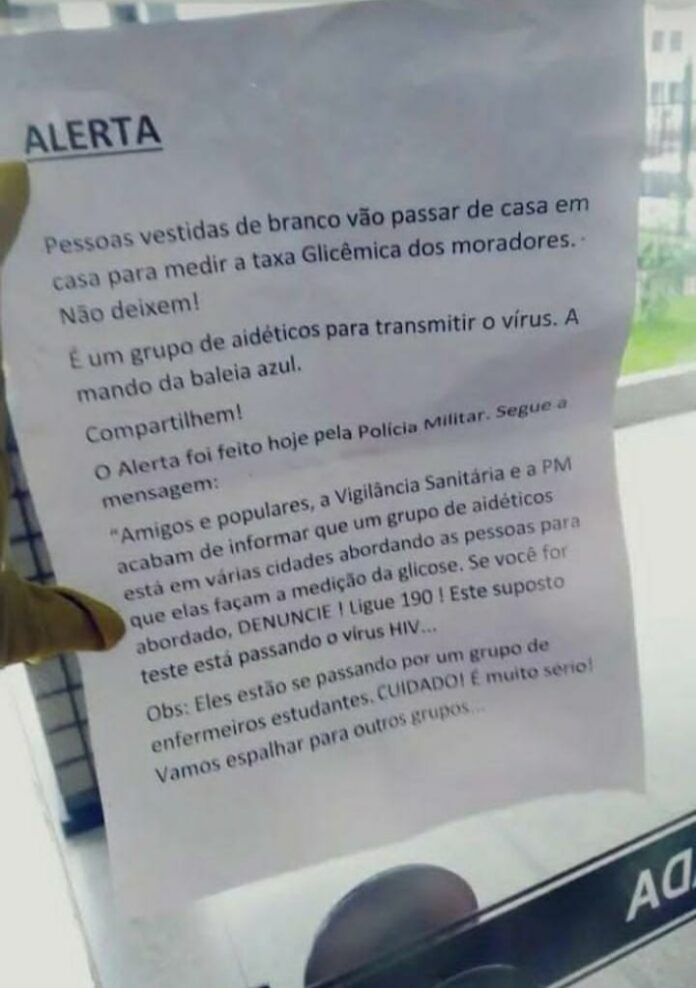 FAKE: É falsa a informação de que há grupo de pessoas se passando por aferidores de glicemia para disseminar o vírus HIV/Aids