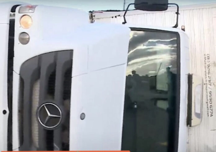 De acordo com a Polícia Rodoviária Federal (PRF), o motorista tentou desviar de um motociclista, quando perdeu o controle e o veículo tombou. O condutor teve ferimentos leves e foi atendido ainda no local.