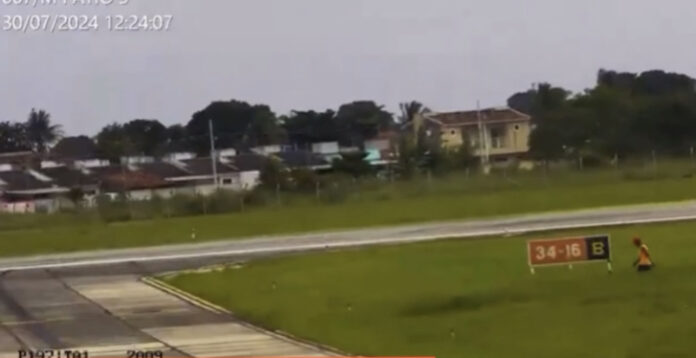 Imagens registradas por uma câmera de segurança do aeroporto mostram o homem caminhando próximo a pista principal e o pátio das aeronaves. Conforme as imagens, no momento da ocorrência, o aeródromo não registrava pousos ou decolagens.