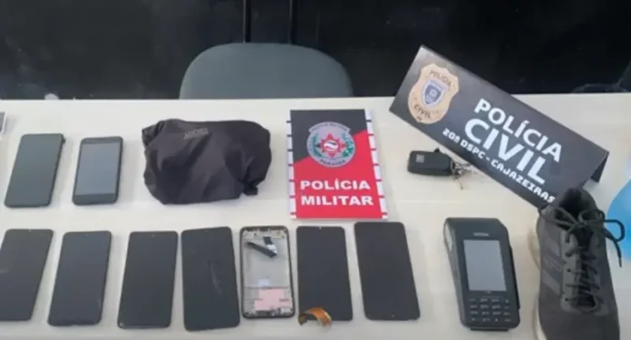 A Polícia Militar realizou buscas na região e conseguiu localizar o suspeito, que foi detido e encaminhado para a delegacia junto com os celulares recuperados.
