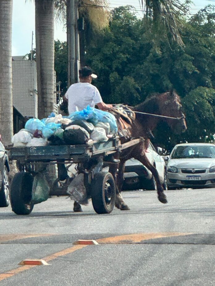No registro, um homem aparece utilizando um cavalo puxando uma carroça completamente carregada de lixo, despejando os resíduos em um terreno que estava limpo. A cena causou indignação entre a população local.